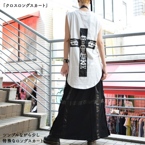 【パンクの十字架つきロング丈スカート】 まるで十字架のような装飾付きスカート。