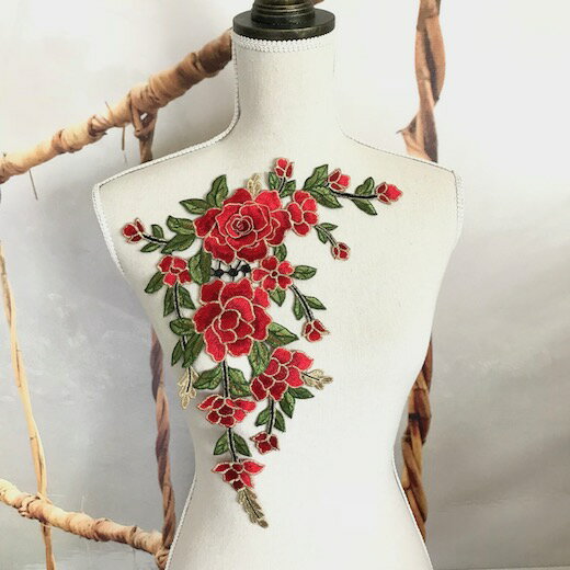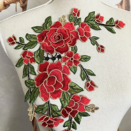 ゴールドのラメ入りバラの刺繍モチーフになります。